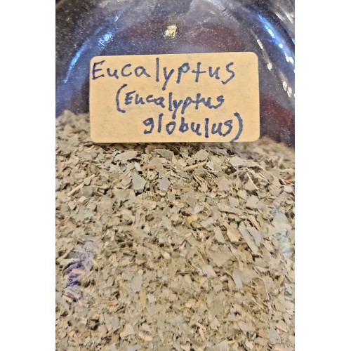 If your parents treated your cold with Vick's Vaporub when you were a child, you know the powerful and pungent scent of eucalyptus leaf, which also goes by the scientific name eucalyptus globulus and colloquially as the "blue gum tree." Although all species of eucalyptus are native to Australia, not all have been successfully cultivated outside of that country or have been equal usefulness as medicinal herbs; eucalyptus globulus however is the most widely cultivated species outside of Australia, and virtually all dried eucalyptus leaf comes from this species. (It has in fact become an invasive species in California.)